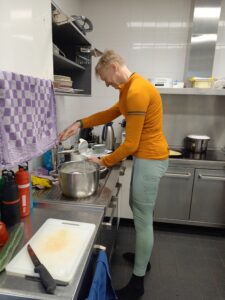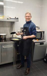 De pelotons kwamen bijna gelijk binnen en konden, zoals gepland, samen aan tafel. Na een welkomstwoord namens de club serveerde Jan zijn pannenkoeken uit. Deze werden met smaak naar binnen gewerkt.