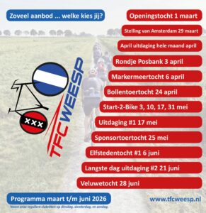 De eerste rit was een succes, dankzij de deelnemers en onze keukenprinsen en smaakt naar meer. Gelukkig zitten wij niet stil en hebben wij voor dit jaar meer in petto:-). Klik hier voor meer info