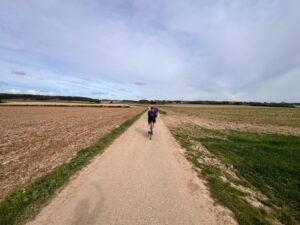 Zoals afgesproken gingen we rustig van start en wilden we vooral genieten van de mooie omgeving, natuur en het heerlijke weer wat ons die dag te wachten stond. We lieten derhalve onze overtollige bagage bij Peter Jan achter en gingen ‘kort kort’ op zoek naar de koffiestop, alwaar ons heerlijke Paulusvlaai werd beloofd …