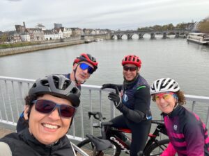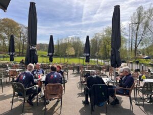Op dag drie taaiden een paar deelnemers, vanwege andere verplichtingen, na het ontbijt af en de groep die overbleef reed nog een mooi rondje langs de Maas. Opnieuw een fris rondje, maar ook weer droog. Een mooie rit langs het water met een heerlijke koffiestop in Rijckholt waar Robert zijn kennis van de Limburgse taal graag met ons (en de serveerster) deelde.