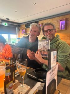Frisse ritjes, maar gelukkig droog! Na een versnapering op het Vrijthof, waar Ria en Tjebbe ook aansloten, zat dag een er bijna op. Douchen omkleden en klaar voor een eetlustopwekkende wandeling naar onze vaste eet stek Brasserie Van Alles Get. Alvast een toast op de goede afloop en een cadeau voor Martijn voor de organisatie van dit weekend.