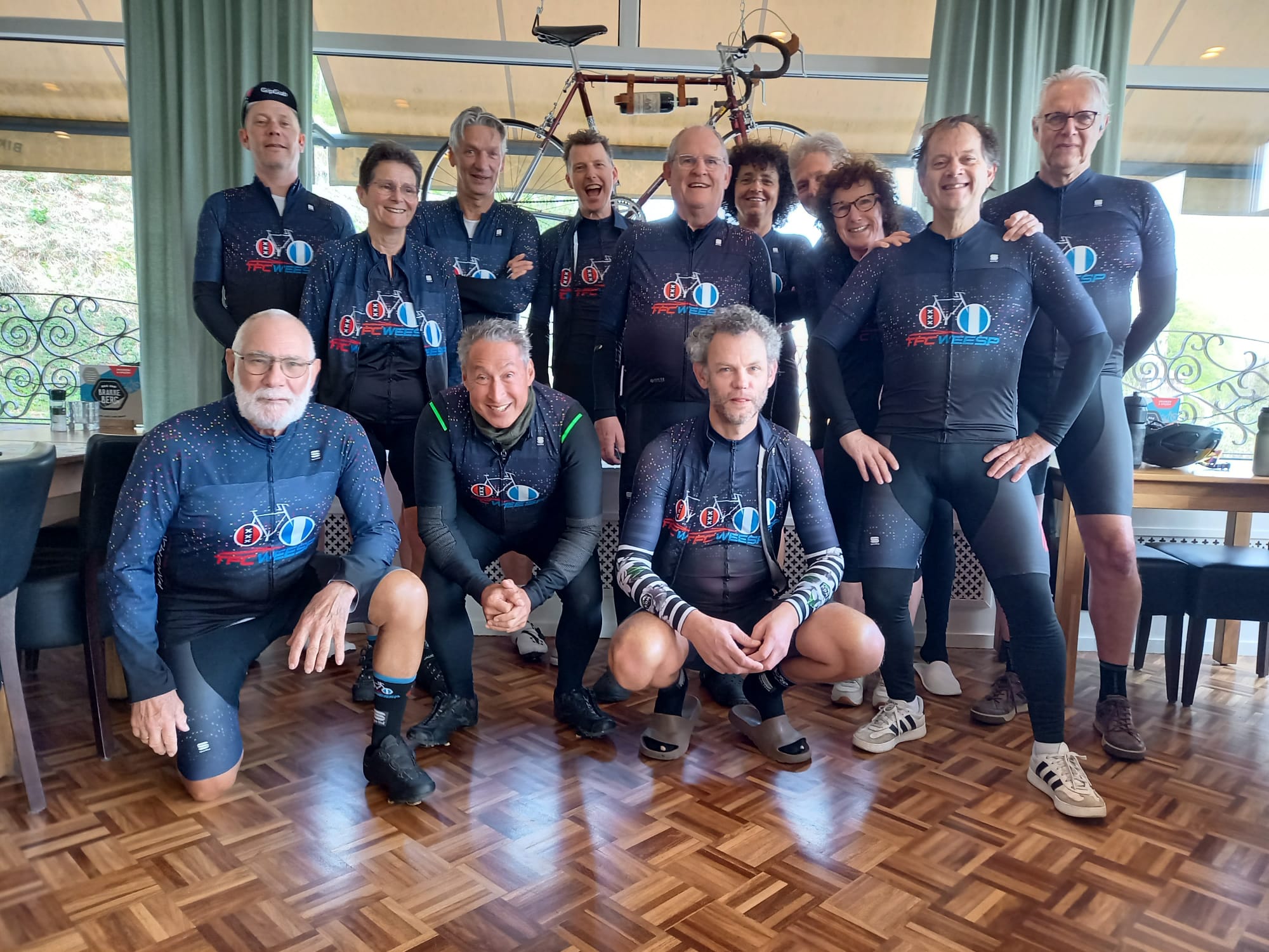 Met nog 25 km op de teller brak het peloton in tweeën; één groep die nog wat wilde nuttigen voor de laatste kilometers en twee die er wel klaar mee waren en door wilden naar de nazit. Zij reden zelfs nog een lusje om mooi op 100 km uit te komen. Daardoor zaten zij nog maar net aan hun welverdiende gele rakkers en een portie garnalenkroketjes toen de rest van de groep weer bij hen aansloot. Eind goed al goed. En vooral goed omdat zij net vóór de regen binnen waren.